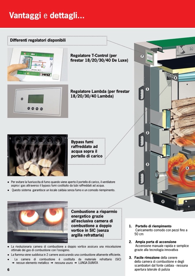 Lafiammavienesuddivisain2camereassicurandounacombustionealtamenteefficiente.