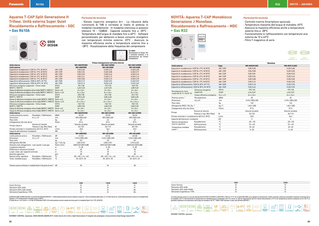1) Livello potenza sonora in accordo alla direttiva 811/2013, 813/2013 e EN12102-1:2017 at +7 °C. 2) I modelli WH-MXC sono sigillati ermeticamente. 3) Dal comando a distanza è possibile impostare la temperatura