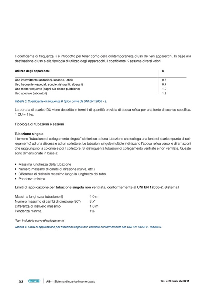 Tabella 3: Coefficiente di frequenza K tipico come da UNI EN 12056 - 2.