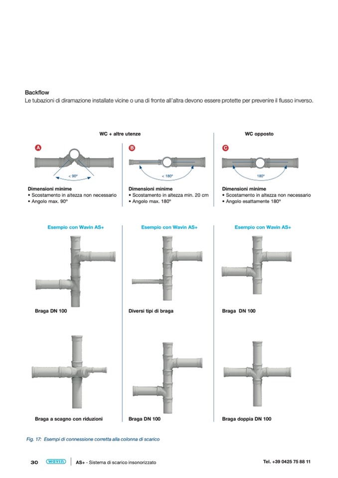 Le tubazioni di diramazione installate vicine o una di fronte all’altra devono essere protette per prevenire il flusso inverso.