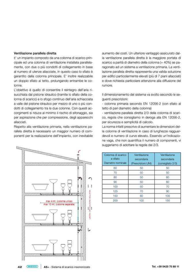 - colonna primaria secondo EN 12056-2 (con sfiato al