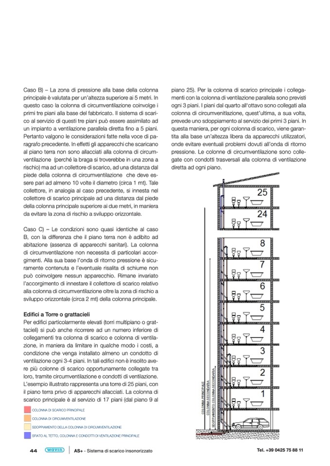 scarico principale è al servizio di 17 piani (dal piano 9 al