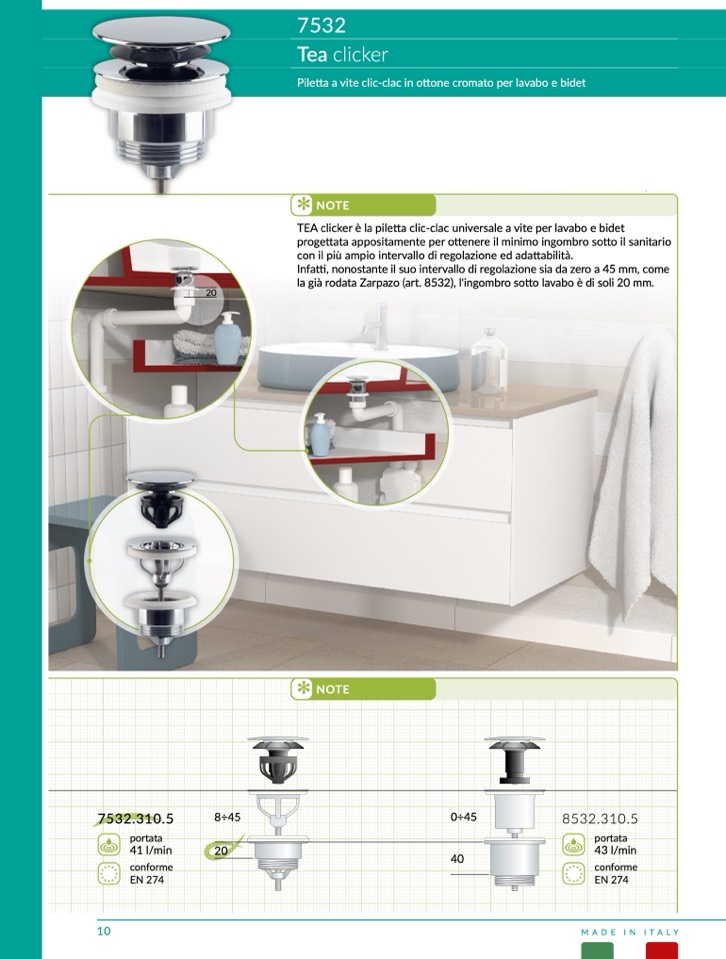 la già rodata Zarpazo (art. 8532), l'ingombro sotto lavabo è di soli 20 mm