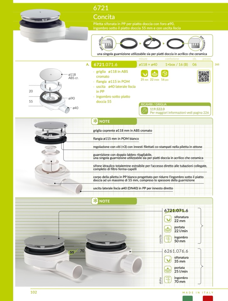 una singola guarnizione utilizzabile sia per piatti doccia in acrilico che ceramic