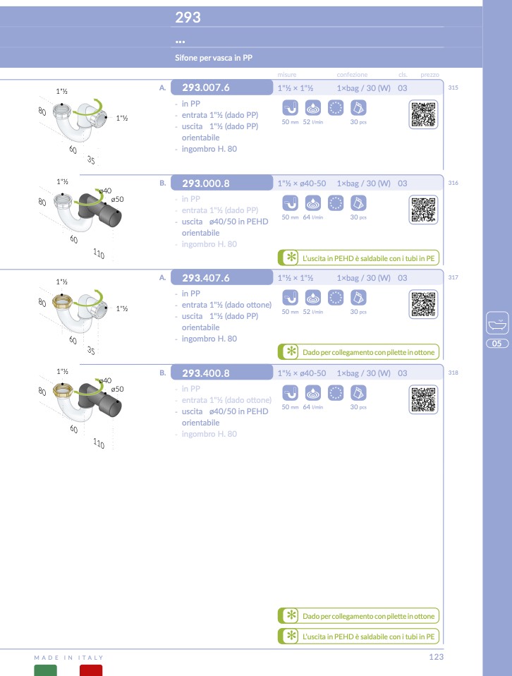 L’uscita in PEHD è saldabile con i tubi in P
