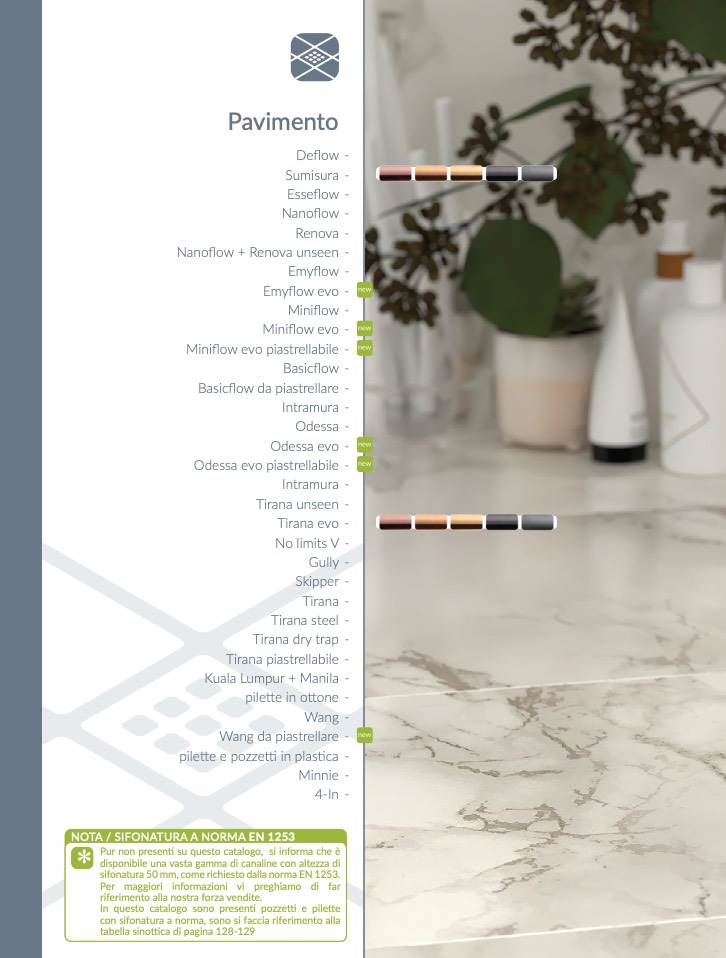 sifonatura 50 mm, come richiesto dalla norma EN 1253