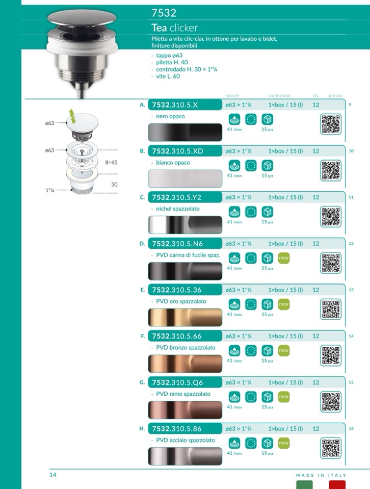 tta a vite clic-clac in ottone per lavabo e bidet,
