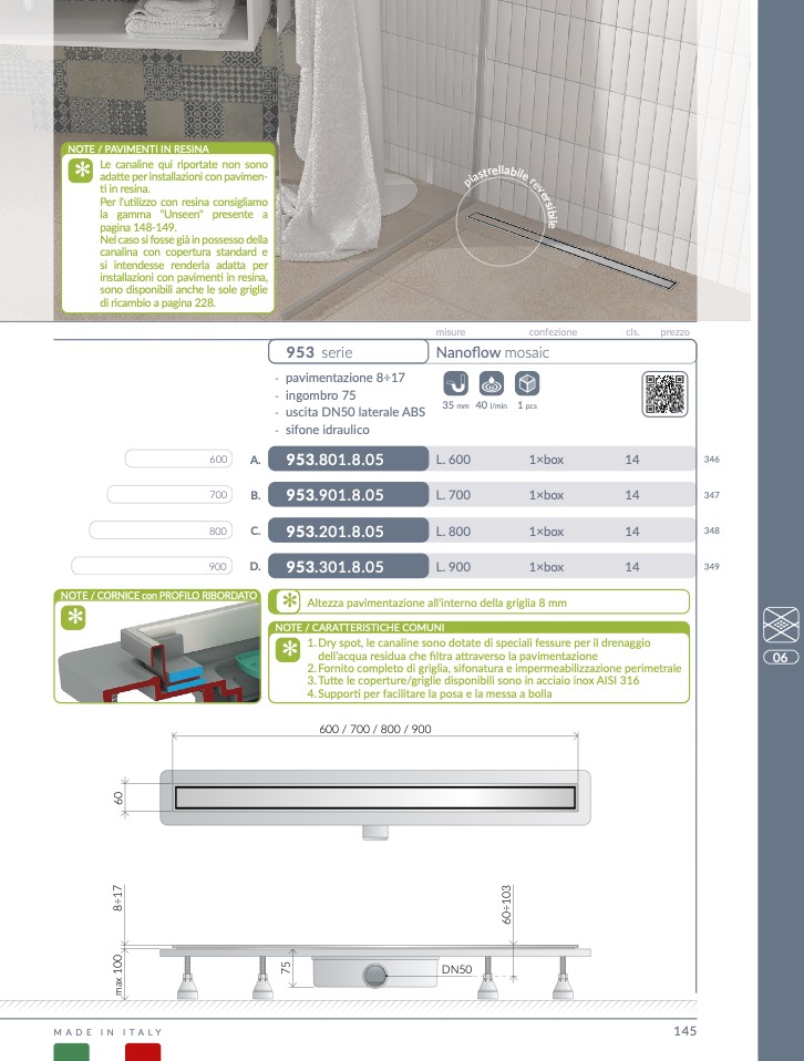 2. Fornito completo di griglia, sifonatura e impermeabilizzazione perimetral