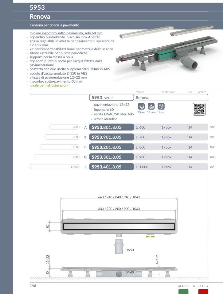 Canalina per doccia a pavimento