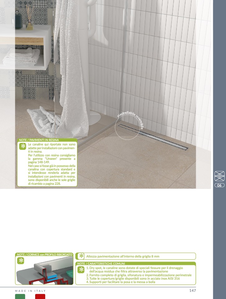 2. Fornito completo di griglia, sifonatura e impermeabilizzazione perimetral