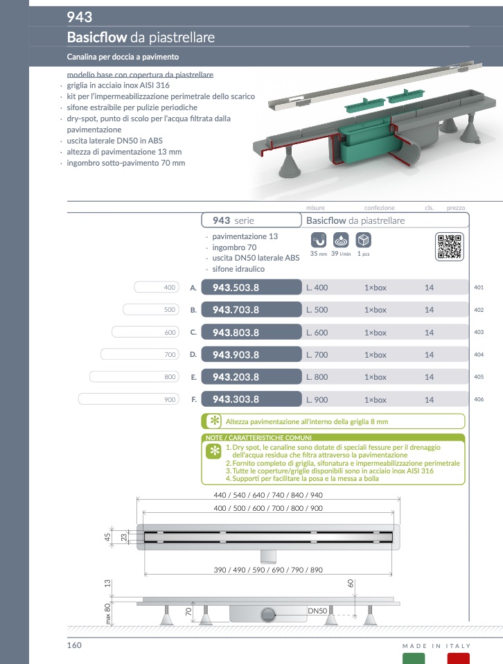 2. Fornito completo di griglia, sifonatura e impermeabilizzazione perimetral