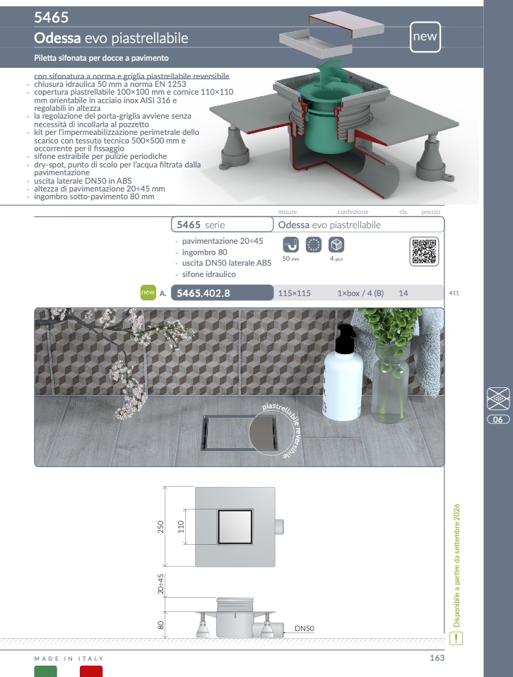 con sifonatura a norma e griglia piastrellabile reversibil