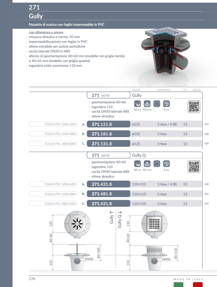 · altezza di pavimentazione 40÷60 mm (modello con griglia tonda)