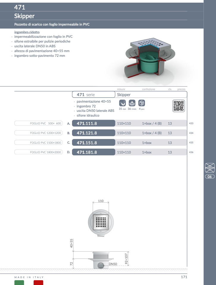 Pozzetto di scarico con foglio impermeabile in PVC
