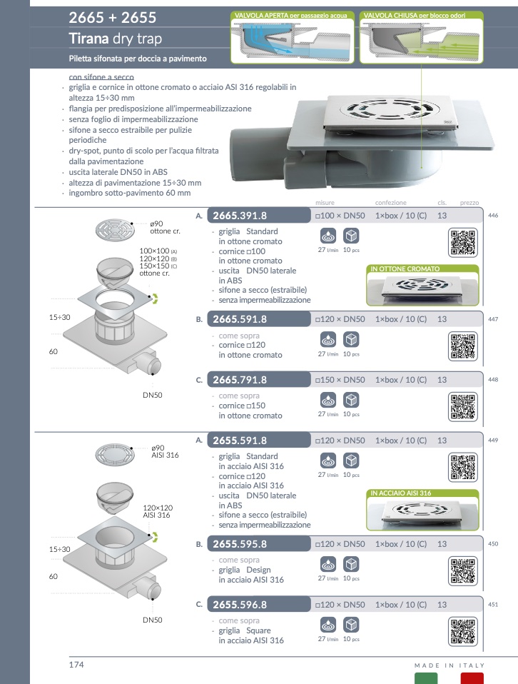 Piletta sifonata per doccia a pavimento