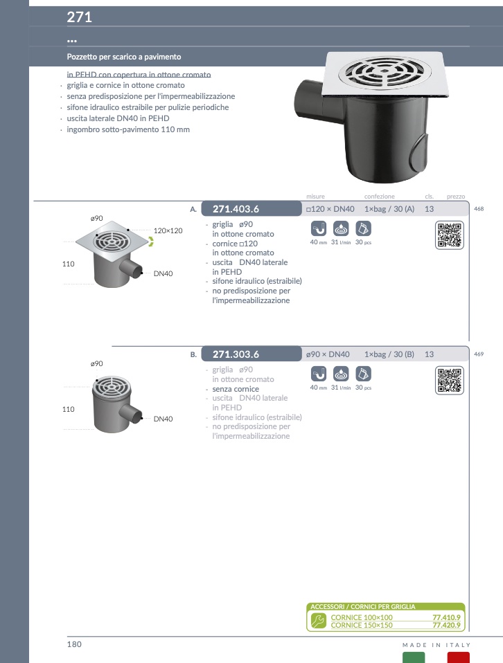 Pozzetto per scarico a pavimento