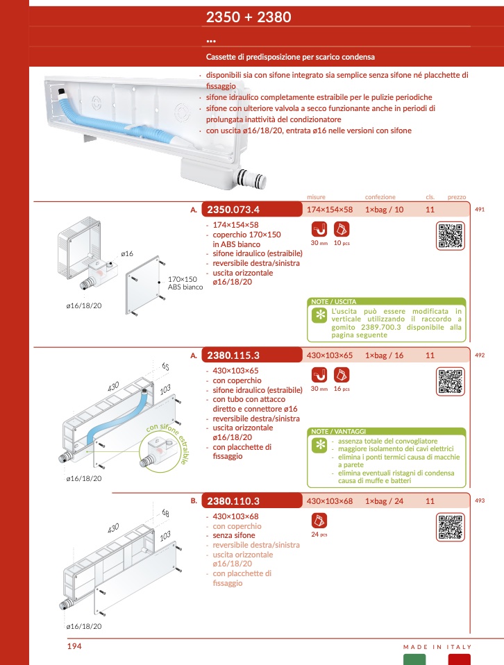 · con uscita ø16/18/20, entrata ø16 nelle versioni con sifone