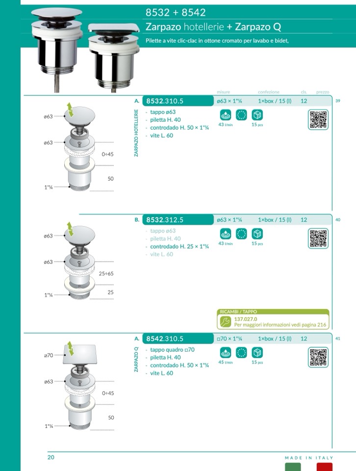 tte a vite clic-clac in ottone cromato per lavabo e bidet,
