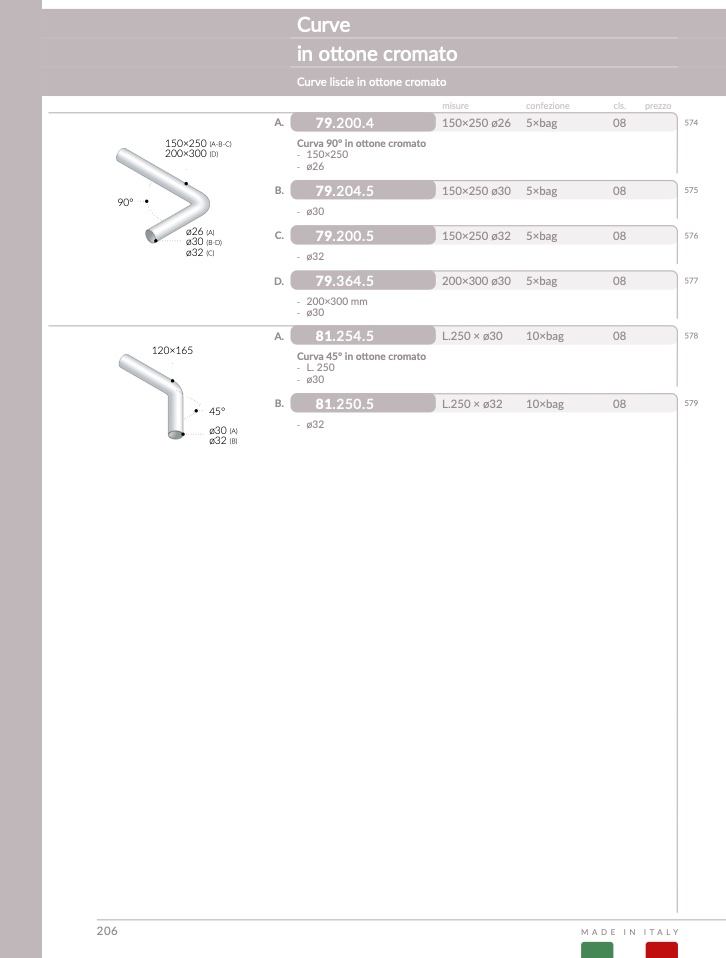 Curva 45° in ottone cromat