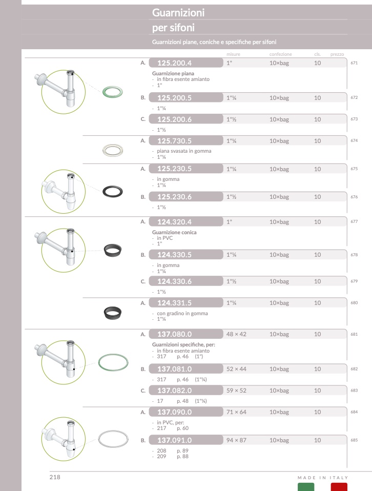Guarnizioni specifiche, per