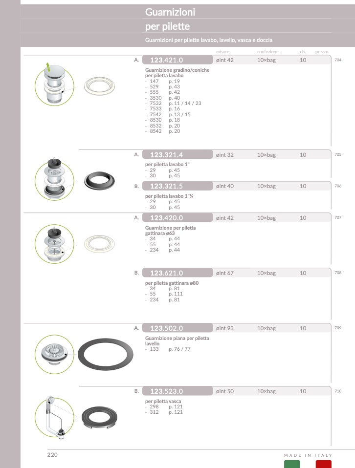 Guarnizione gradino/coniche