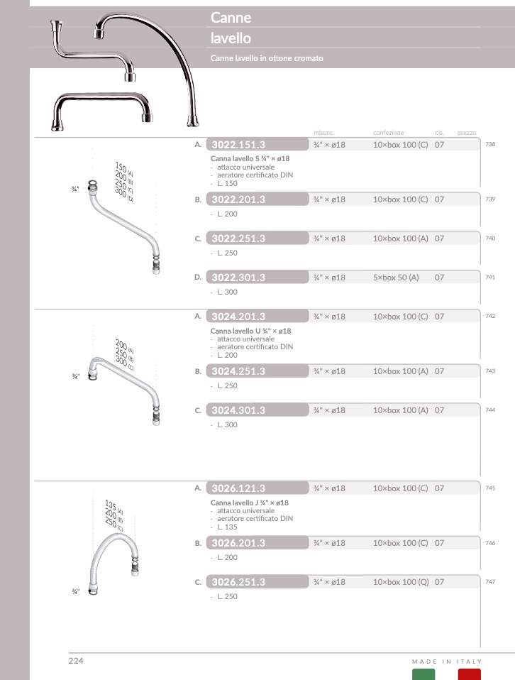 Canna lavello J ¾" × ø18
