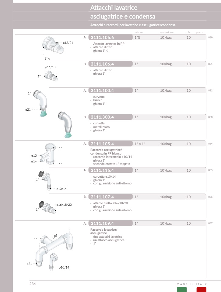 ttacchi e raccordi per lavatrice e asciugatrice/condens
