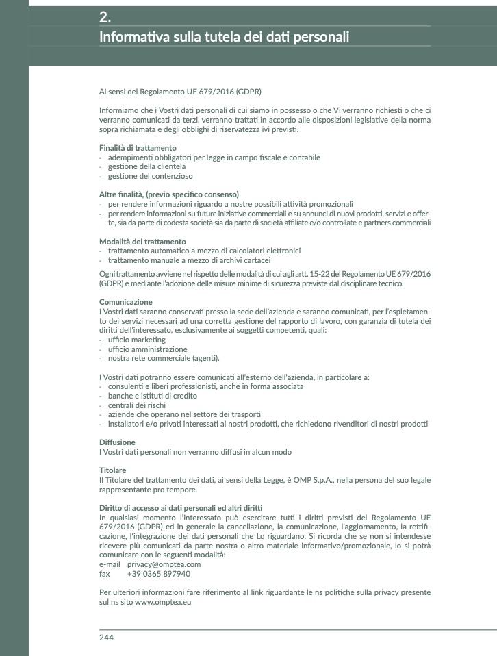 Il Titolare del trattamento dei dati, ai sensi della Legge, è OMP S.p.A., nella persona del suo legale