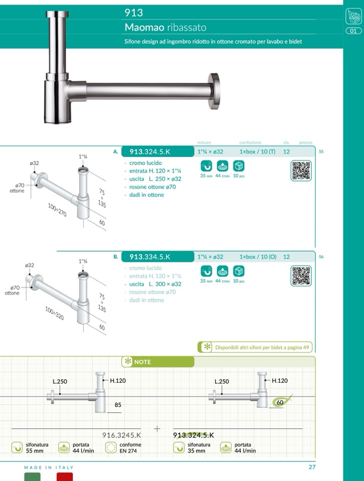 Disponibili altri sifoni per bidet a pagina 49