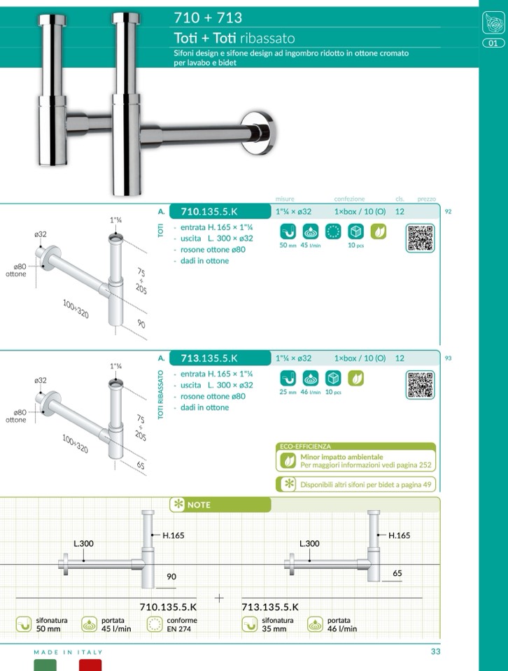 Sifoni design e sifone design ad ingombro ridotto in ottone cromat