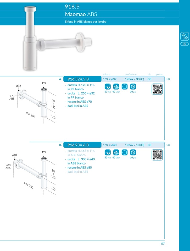 Sifone in ABS bianco per lavab