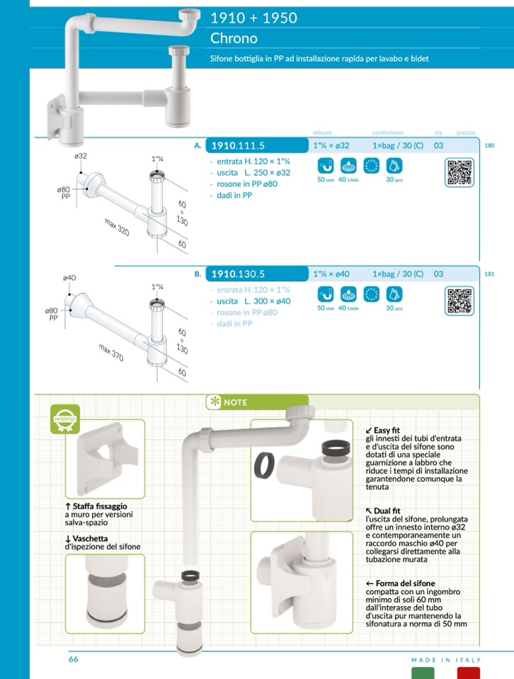 ttiglia in PP ad installazione rapida per lavabo e bide