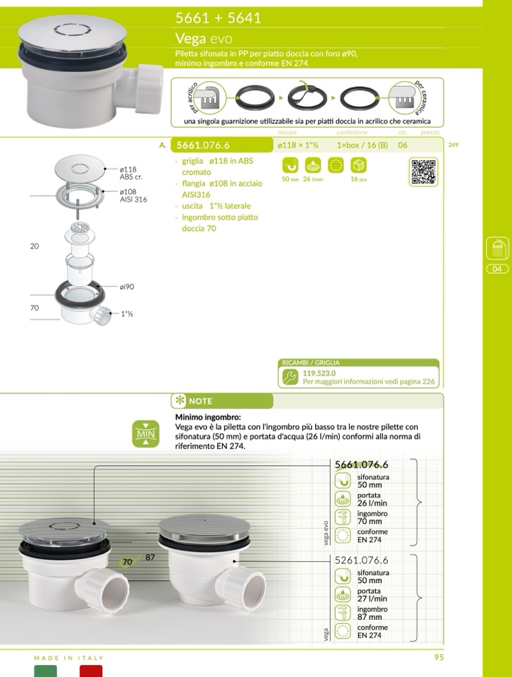 minimo ingombro e conforme EN 274