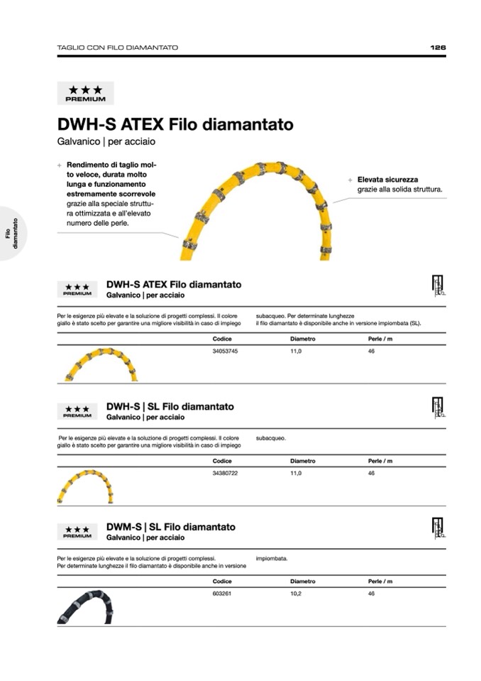 Per determinate lunghezze il filo diamantato è disponibile anche in versione