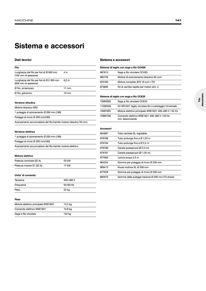 Sistema di taglio con sega a filo CCH25