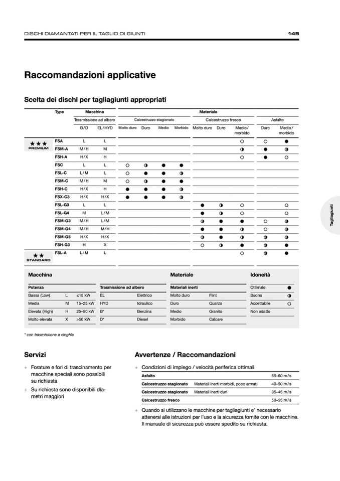 + Condizioni di impiego / velocità periferica ottimali