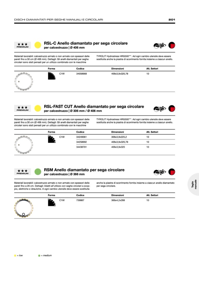 pareti fino a 30 cm (Ø 406 mm). Dettagli: Gli anelli diamantati per seghe