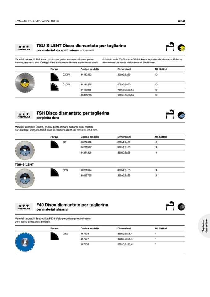 Materiali lavorabili: Granito, gneiss, pietra arenaria calcarea dura, mattoni