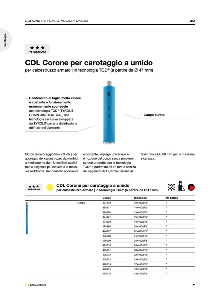 CORONE PER CAROTAGGIO A UMIDO