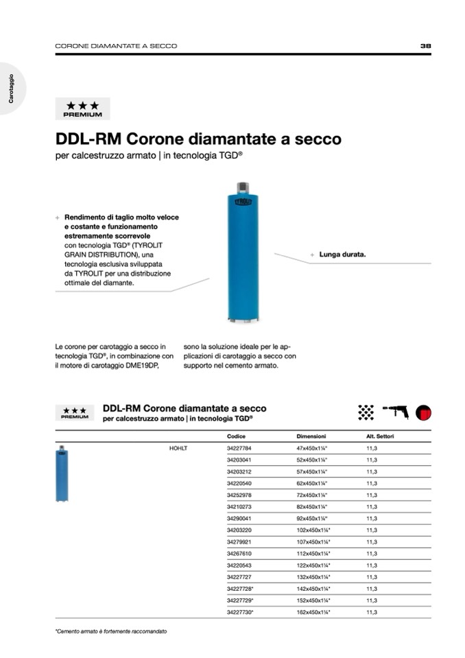 plicazioni di carotaggio a secco con