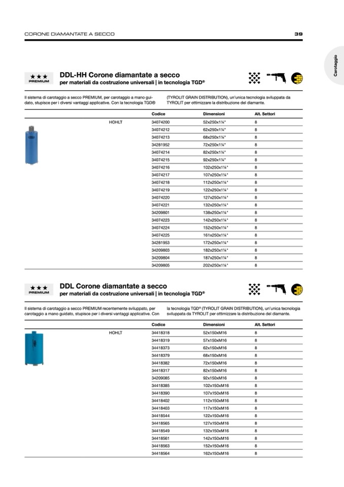 Il sistema di carotaggio a secco PREMIUM recentemente sviluppato, per
