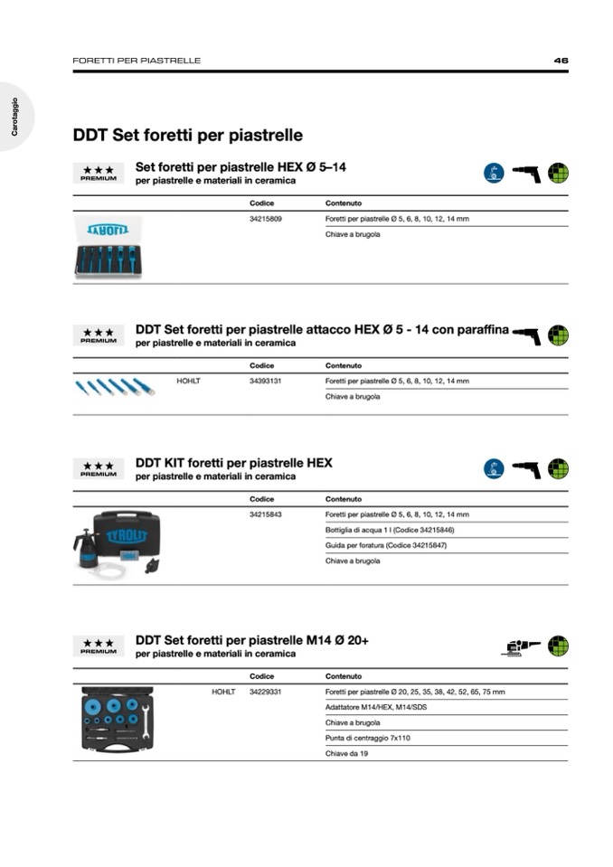 Foretti per piastrelle Ø 5, 6, 8, 10, 12, 14 mm