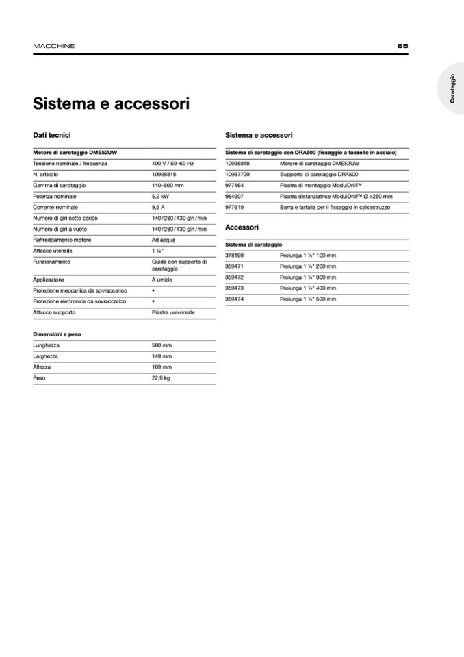 Sistema di carotaggio con DRA500 (fi ssaggio a tassello in acciaio)