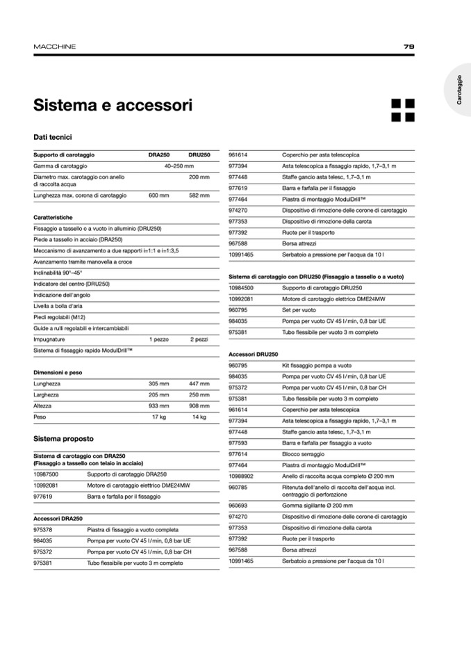 Sistema di carotaggio con DRU250 (Fissaggio a tassello o a vuoto)