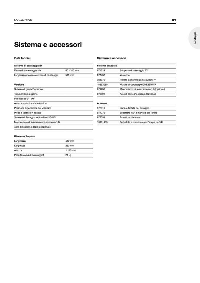 Sistema di carotaggio BY