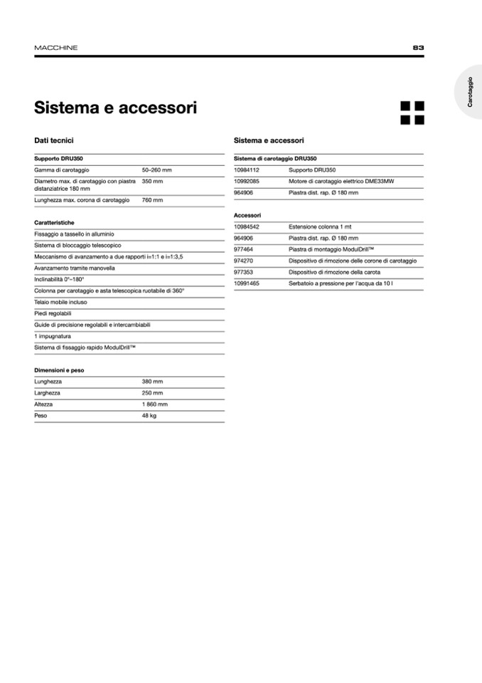 Colonna per carotaggio e asta telescopica ruotabile di 360°