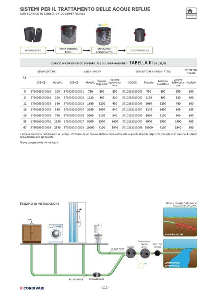 Il dimensionamento dell’impianto va sempre effettuato da un tecnico abilitato ed in conformità a quanto disposto dagli enti competenti in materia di rilascio