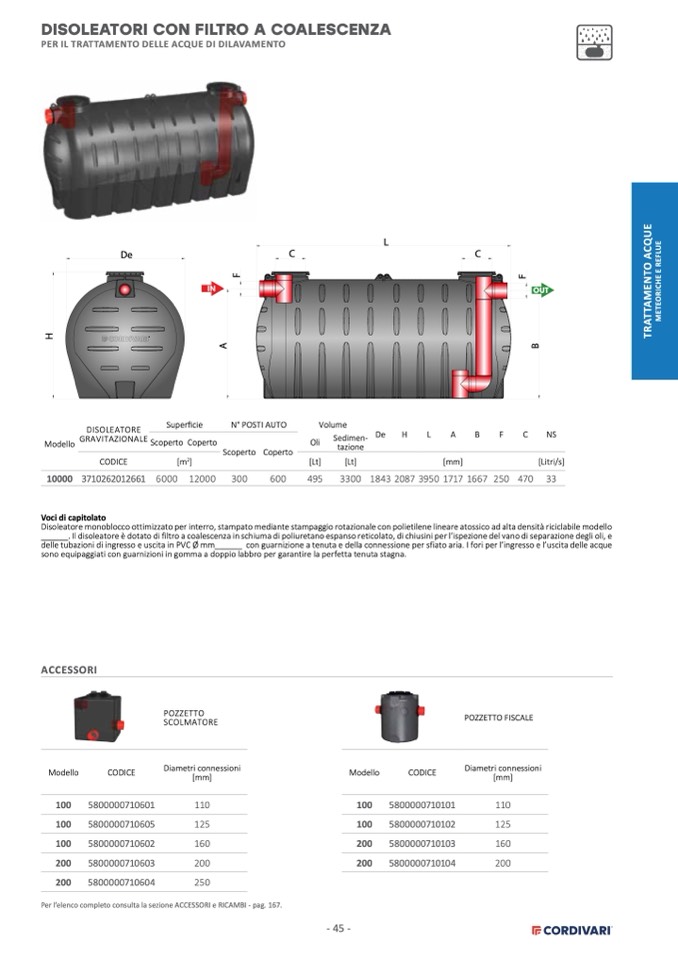 ______. Il disoleatore è dotato di filtro a coalescenza in schiuma di poliuretano espanso reticolato, di chiusini per l’ispezione del vano di separazione degli oli, e