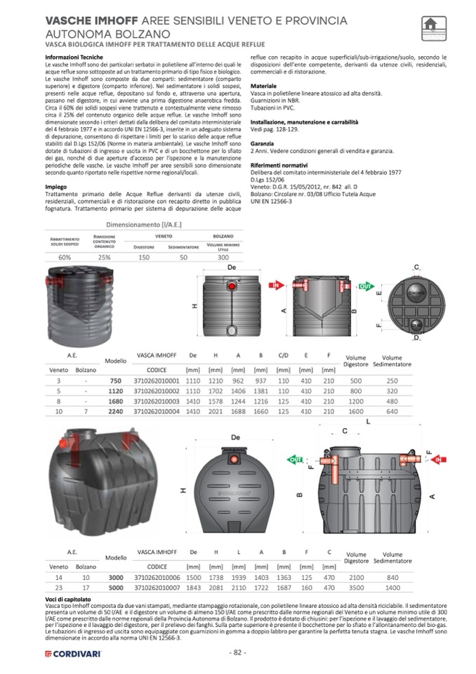 l/AE come prescritto dalle norme regionali della Provincia Autonoma di Bolzano. Il prodotto è dotato di chiusini: per l’ispezione e il lavaggio del sedimentatore,