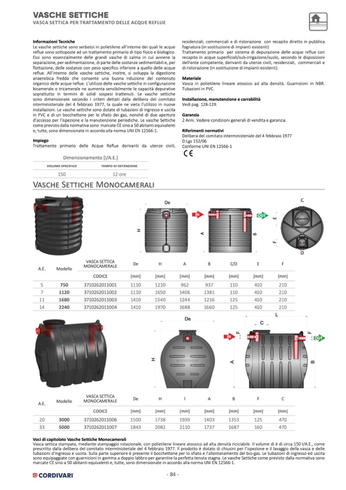 marcate CE sino a 50 abitanti equivalenti e, tutte, sono dimensionate in accordo alla norma UNI EN 12566-1.